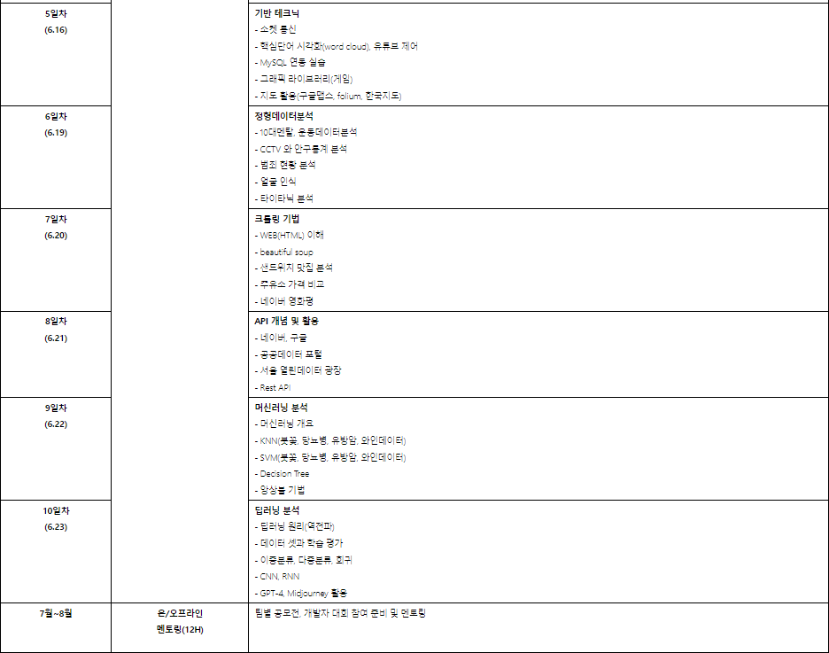 - ※ 비이공계 : Python 및 빅데이터, 인공지능 관련 자격증 소지 및 유사한 경력, 교육을 수료한 경우 참여 가능